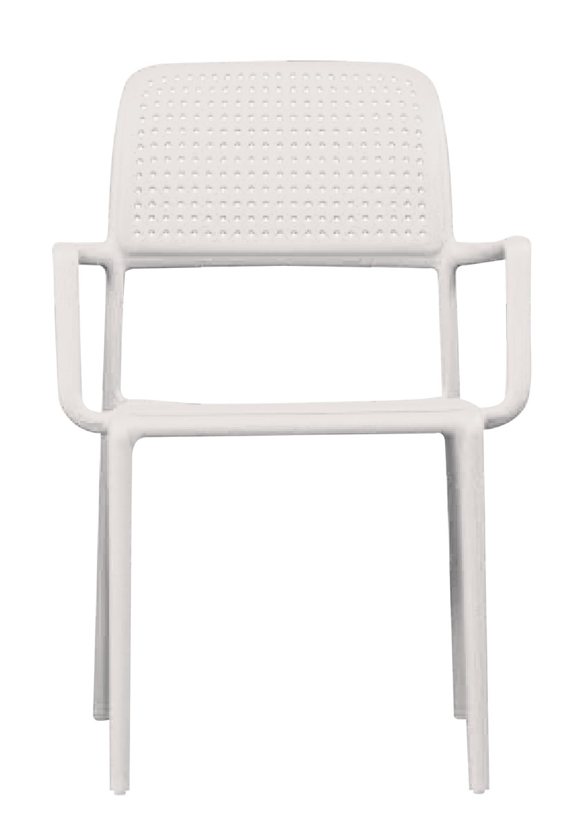 Moderní židle s područkami je vyrobená z barevného vysoceodolného polypropylenu se skelným vláknem. Křesílko je vhodné k použití jak v interiéru, tak i do exteriéru jako křesílko venkovní. Je stohovatelné, vhodné i jako židle restaurační. Nosnost 200 kg. Prodloužená záruka 36 měsíců.